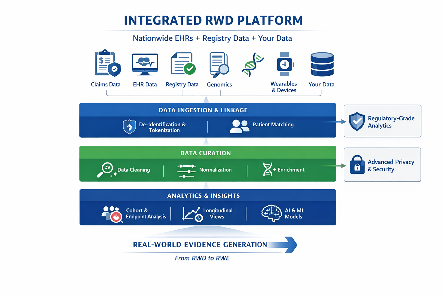 A disease-specific platform integrates patients’ medical records into an analytical data set to efficiently answer a wide-range of research questions. A thoughtfully designed platform links data and insights from multiple, diverse sources through universal de-identified patient matching and integration. As challenges surface and new data types become available, these platforms generate the evidence that you need throughout your research program. Access a platform built by SixTen or use our data sources as a launching point for a platform that includes your data as well. Based on your objectives, we’ll design and build a platform with comprehensive registry data and emerging data types.